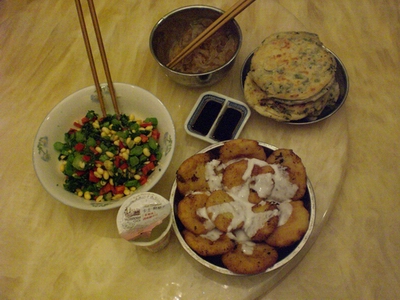though this event did not happen today.....Ooh..who cares, i made leek pancakes and hash brown all by..............HMM......all with my dad at yesterday dinner. [in fact, we eat at ten because of that...u know, people say baking cakes actually kills time]
